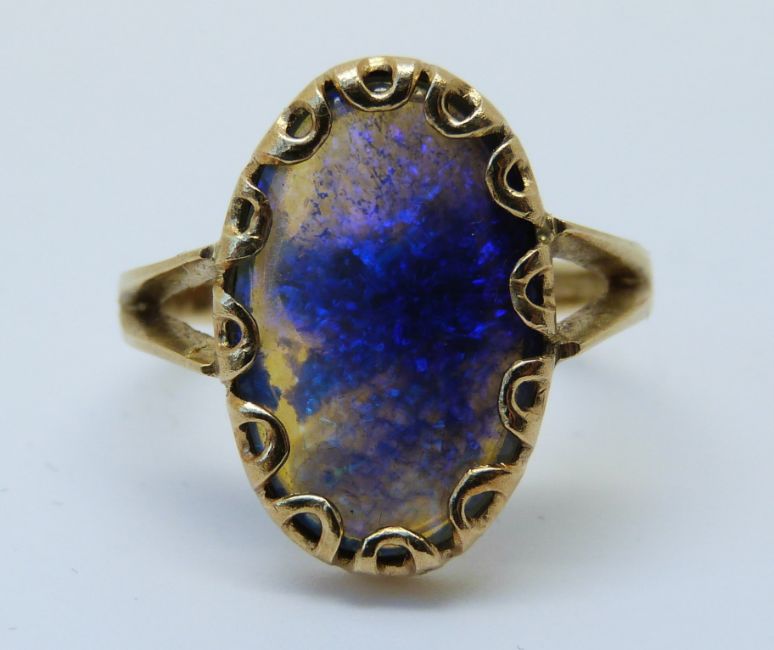 A 18ct gold ring set with a large oval opal cabochon (size M)