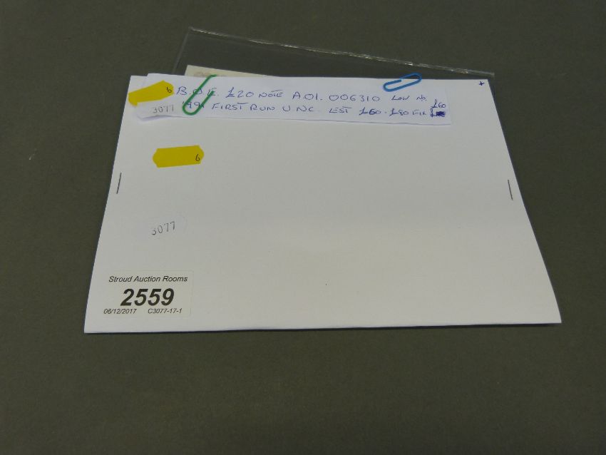 Bank of England £20 note AOI 006310 1991 first run