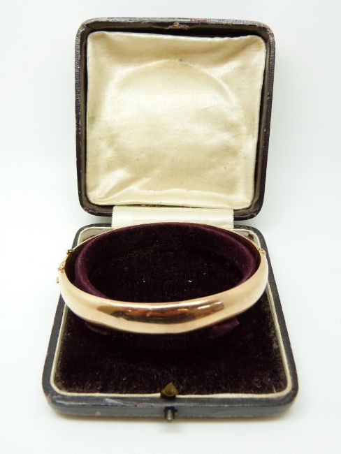 A 9ct rose gold bangle in original case, 14.1g