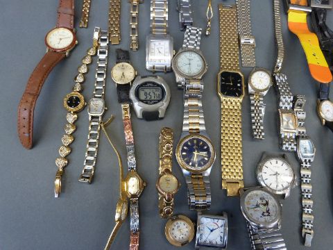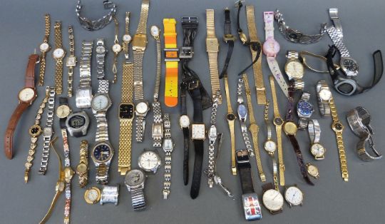 Fifty-eight various ladies and gentleman's wristwatches.