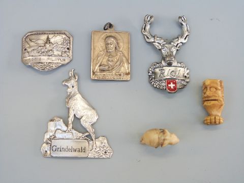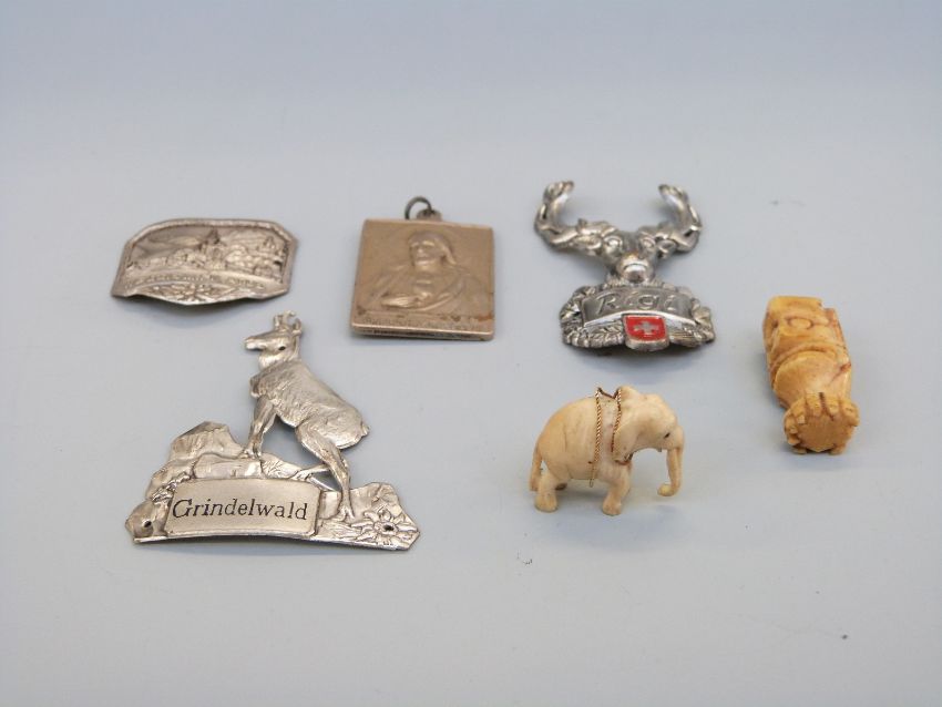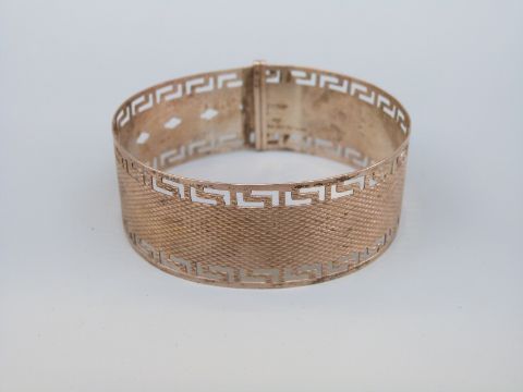 A sterling silver bangle with Greek key design, ivory items, faux tortoiseshell bangle etc