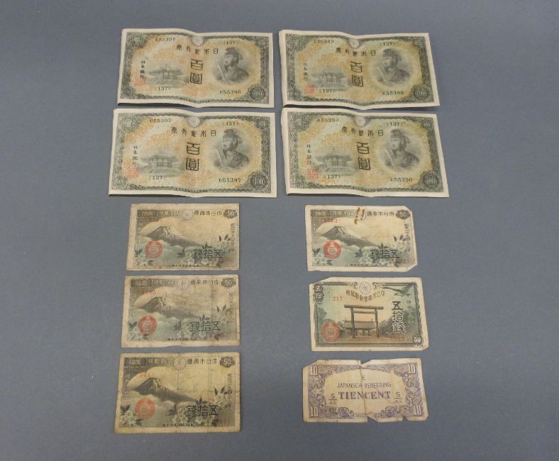 Japanese banknotes including 2 consecutive pairs.