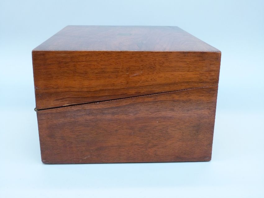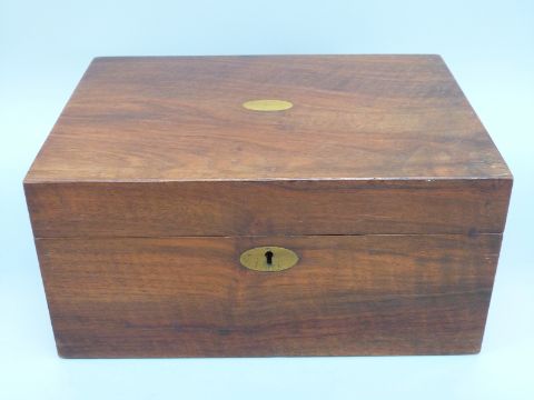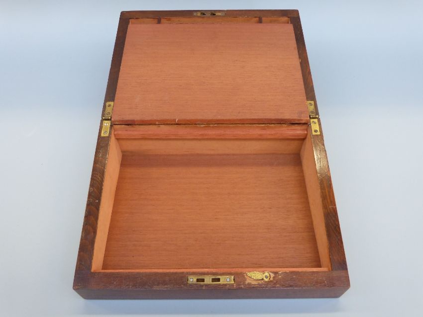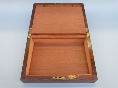 A 19thC mahogany writing slope with fitted interior and inset velvet writing surface, H15 x W30cm