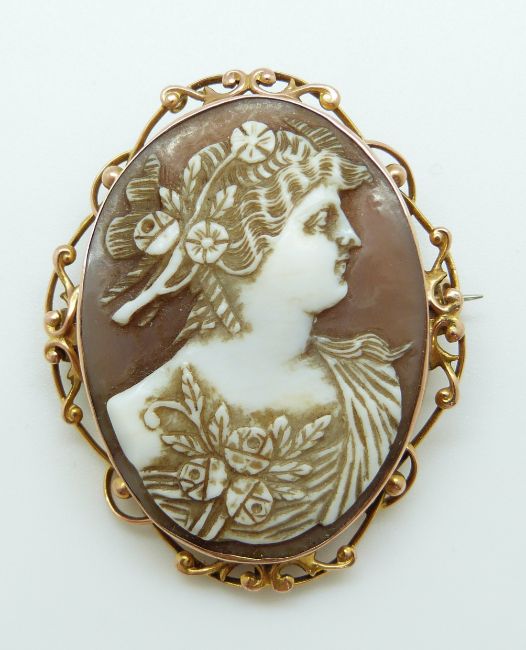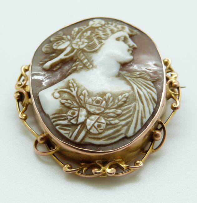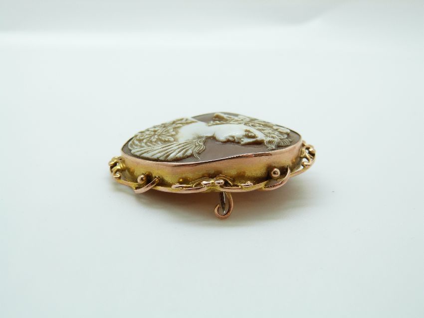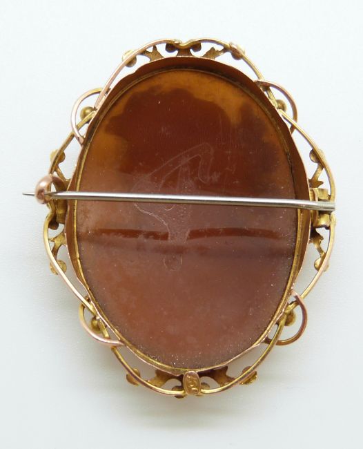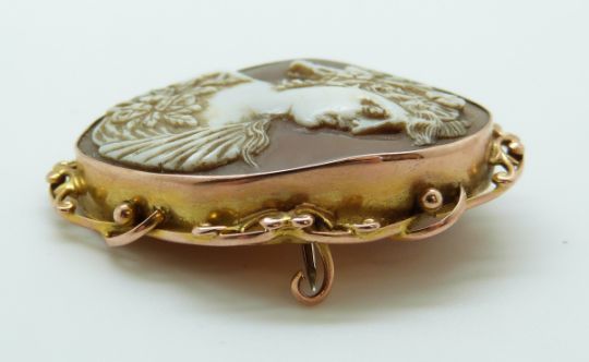 A Victorian yellow metal brooch set with a cameo, 4.6cm