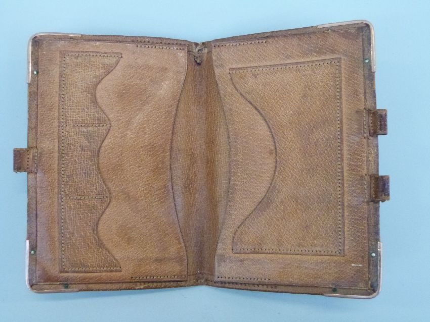 A leather wallet with 9ct gold mounts