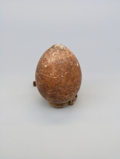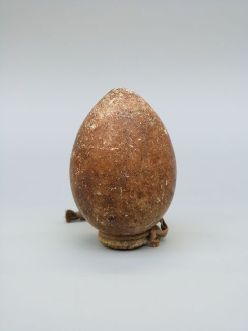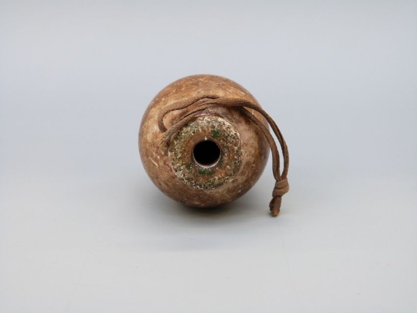 A stoneware or pottery ovoid vessel probably of some antiquity, with collared rim and hanging loop, possibly Chinese or Eastern origin and used for snuff, spirit, medicinal purposes, length 7cm