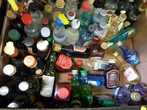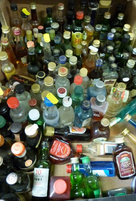 Approximately 100 alcohol miniatures including approximately 15 whisky, 45 brandy or brandy based, 18 vodkas and gins and 15 port and Irish coffee