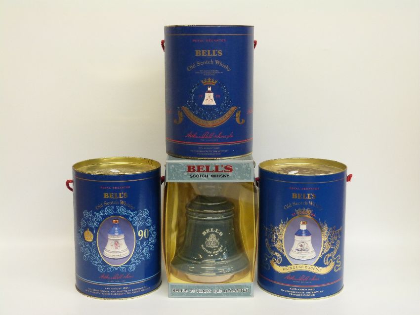 Four Bell's Whisky bells, including a 20 year old example, all 75cl