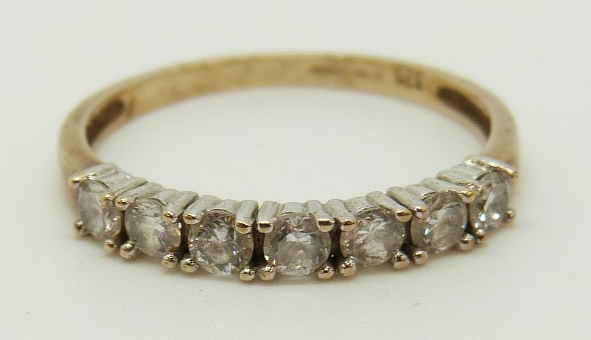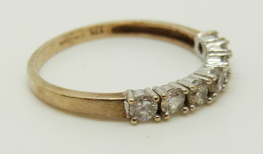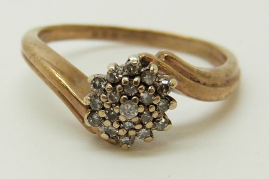 A 9ct gold rings set with diamonds in a cluster and a 9ct gold ring set with cubic zirconia (size L and O)