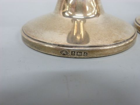 A pair of hallmarked silver squat candlesticks, Birmingham 1960 maker Adie Brothers Ltd, height 8.5cm