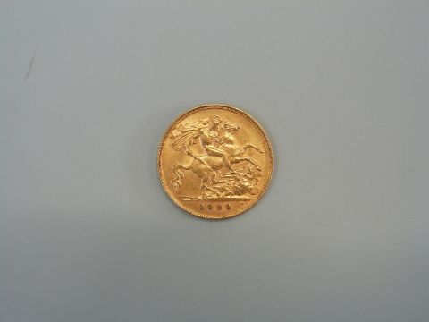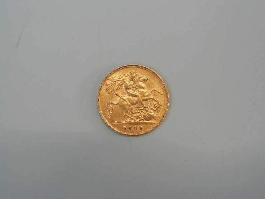 A 1909 gold half sovereign.
