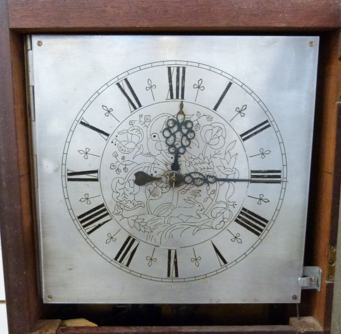 An early / mid-20thC longcase grandmother clock, 169cm tall, built and made by the vendor's friend's grandfather in the 1920s. Together with original hand-drawn technical drawings of movement and case, and a 1924 Principles of Electric Clocks book.
