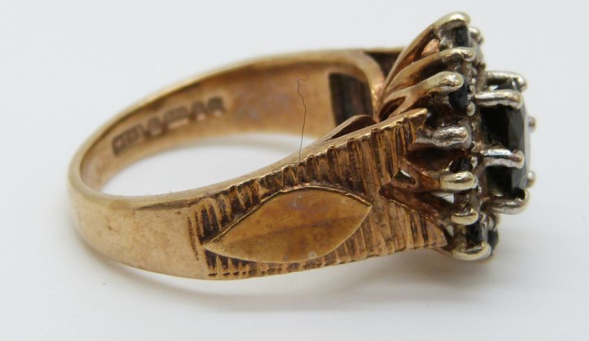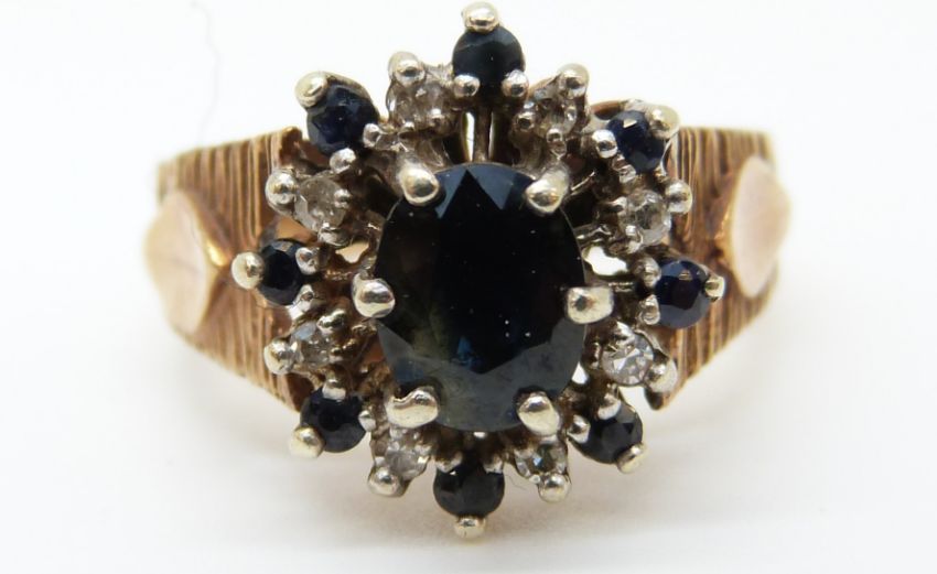A 9ct gold ring set with sapphires and diamonds (size K)