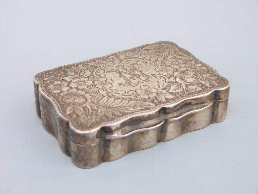 An Edward VII hallmarked silver snuff box with shaped edge and gilt interior, Birmingham 1902 maker John Rose, length 6.25cm, weight 56g