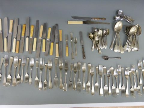 A quantity of silver plated cutlery and a Georgian hallmarked silver teaspoon