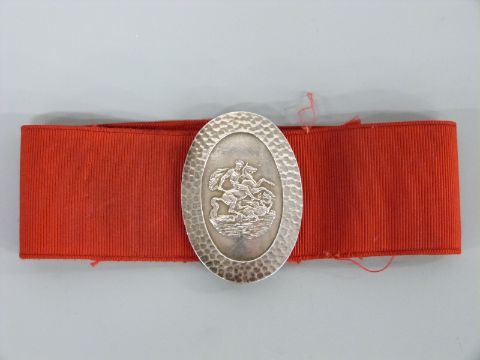 A hallmarked silver belt buckle from St George's Hospital, Knightsbridge, London, Birmingham 1977 maker Turner & Simpson, height 6.5cm, weight 76g all in