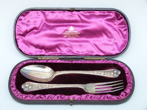 A cased hallmarked silver spoon and fork, London 1831