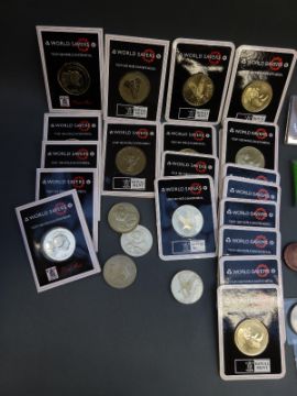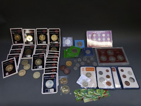 A collection of medal coins, first decimal coin sets etc