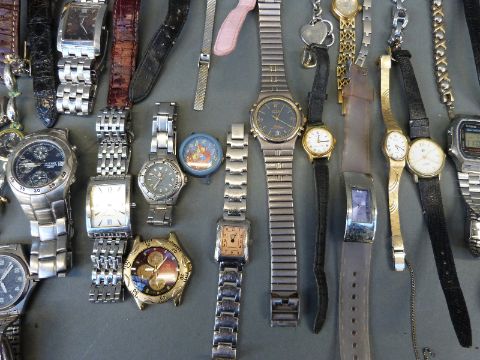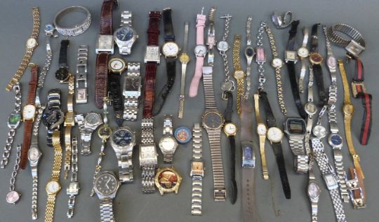 Fifty-five various ladies and gentleman's wristwatches.