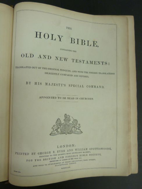 Bible, containing Old & New Testaments London, 1854 with a copy of The Self-Explanatory Reference Bible, Glasgow 1860 both volumes bound in full leather raised bands & gilt lettering