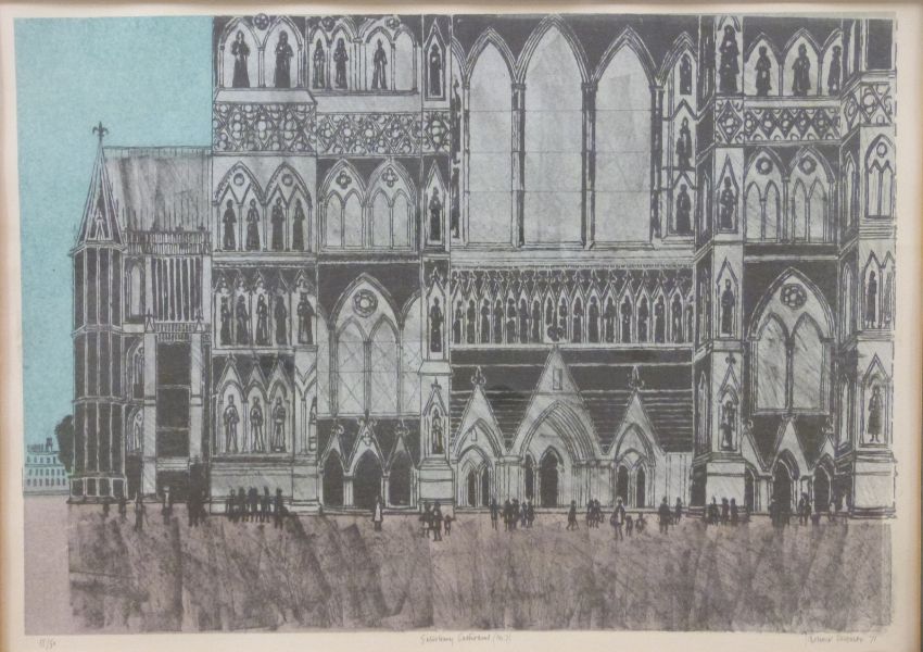 Robert Taverner Salisbury Cathedral No 7, limited edition lithograph (18/50), signed and dated '71, 44cm x 62cm