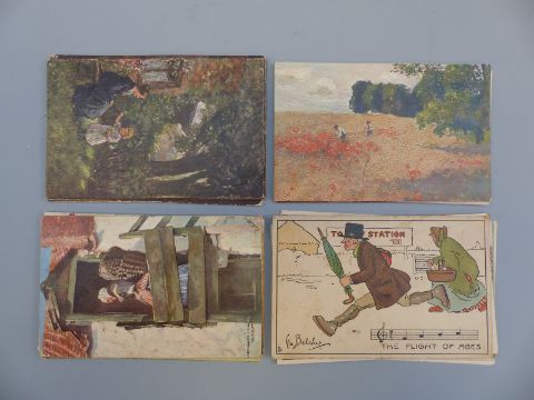 A collection of approximately 500 postcards including Edwardian, many stamped and scripted, includes a large quantity of comic cards from that era, Arthur Moreland, Tucks etc, in vintage filing drawers