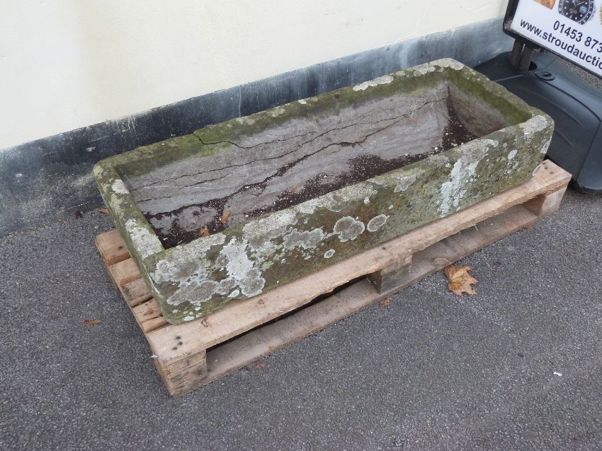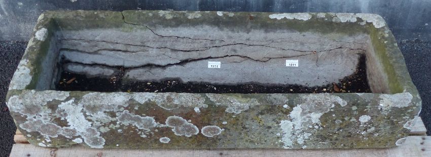 A rectangular carved natural stone trough (L107 x W42 x H20cm)