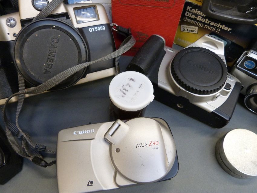 A quantity of cameras to include Minolta X-700, Olympus IS.5000, Canon EOS 300 and Olympia OY5050