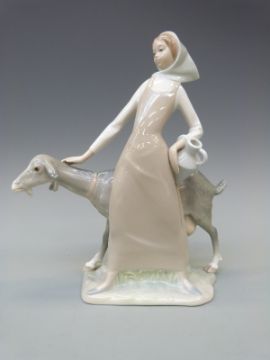 A Lladro figurine of lady with goat, 28cm tall