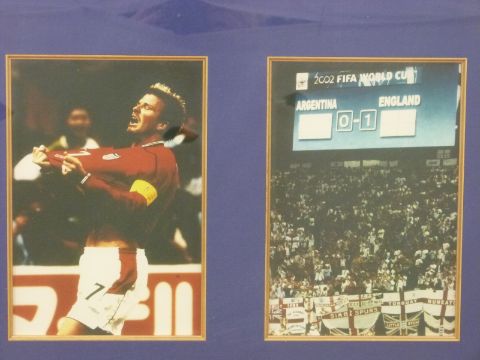 David Beckham signed England football photographic montage, with certificate of authenticity, 70 x 56cm.