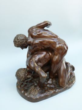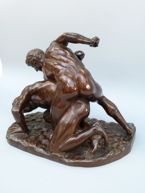E Barbedienne bronze 'The Wrestlers', after the Roman copy of the Ancient Greek original, signed to base E Barbedienne with foundry rondal, 32cm wide, 28cm tall
