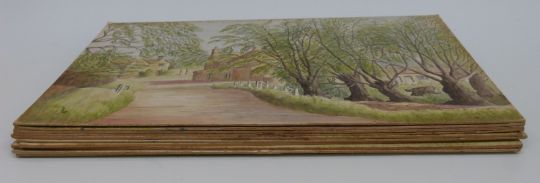 Ten Muriel Matthewman watercolours including town and village scenes, approximately 27 x 38cm