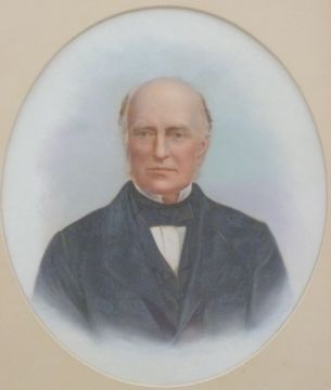 A 19thC oval portrait of a gentleman, maximum diameter 25cm, label verso reads 'William Pilkington J.P D.L Born 1800 died 1872 ... founders of Pilkington Bros. St Helens, glass manufacturers in 1826'