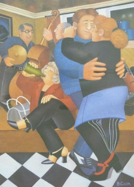 Beryl Cook 'Shall We Dance' signed print with blind stamp lower left, 70 x 53cm