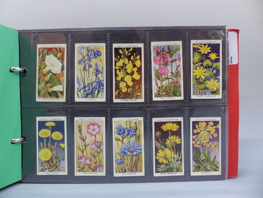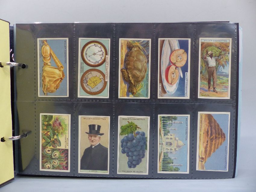 A collection of cigarette cards in four albums, includes Players & Wills, sets include Railway Engines, Merchant Ships, Safety First, Borough Arms, RAF Badges, Cycling etc