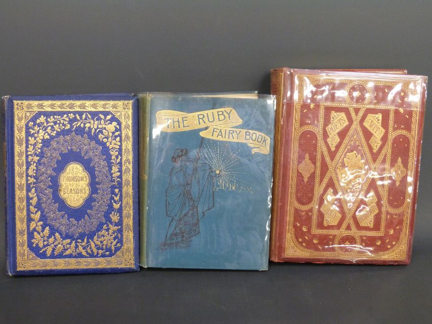[Victorian Binding] Thomson's Seasons 1859 decorated gilt cloth with 2 mounted proof engravings, Poets Wit and Humour (c1860) and The Ruby Fairy Book with 78 illustrations in pictorial cloth