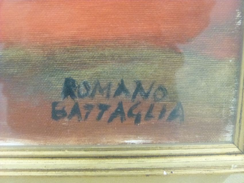 Romano Battaglia oil on canvas oxen, signed bottom right and inscribed verso, 39 x 49cm