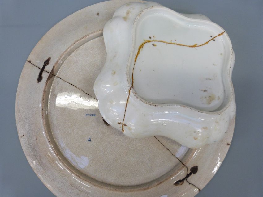 Caughley sewing dish marked Salopian and a large Spode dish.