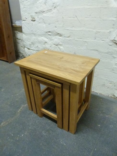 A modern light oak nest of tables, H49 x W52 x D36cm