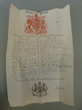 A Victorian Courier's passport signed by Earl Granville, to allow Captain Howarth, Queen's Foreign Service Messenger, passage to Versailles, 21 December 1870, signed Granville and with embossed stamp lower left