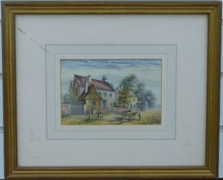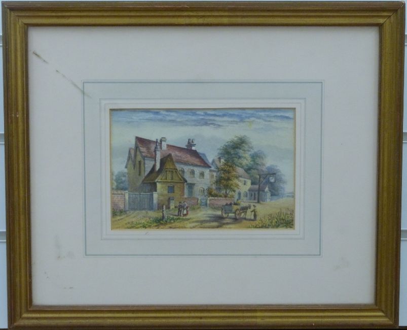 Attributed to John Gorwood 19thC watercolour 'Three Mile Cross on Thames', 12 x 18cm