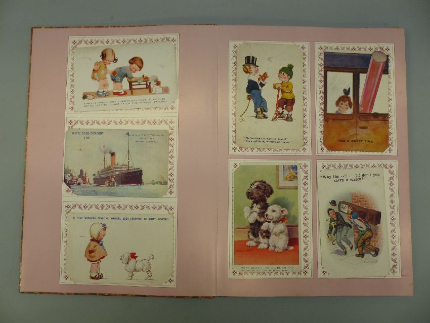 An album of humorous and greeting postcards including six Mabel Lucie Attwell, Lawson Wood etc