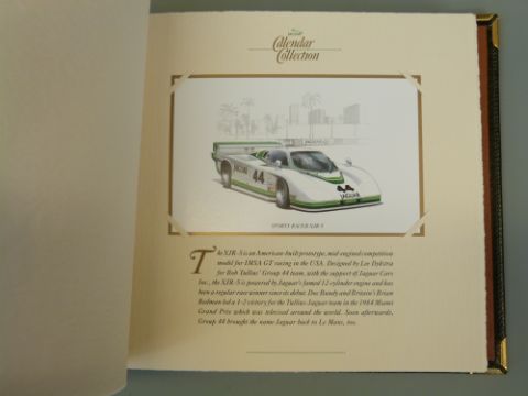 Jaguar Calendar Collection, a collection of individually mounted airbrushed drawings, images from official calendars of the 1980s. Including Daimler, Sports, Saloons and Competition cars, gilt lettered green leather album, limited edition 80/2000, signed by the artist John Beecham
