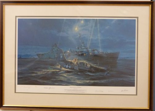 Robert Taylor 'Mission Beyond Darkness' limited edition (39/750) print, signed by the artist and Gordon, Curry, Yaussi and Vracui, 46 x 73cm