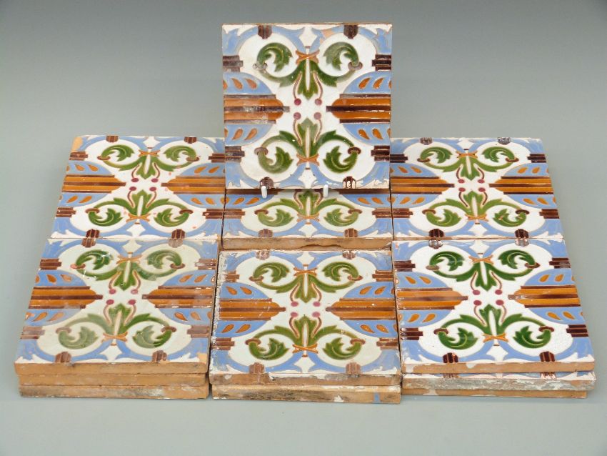 Eighteen Victorian tiles decorated in the Aesthetic/ Art Nouveau style