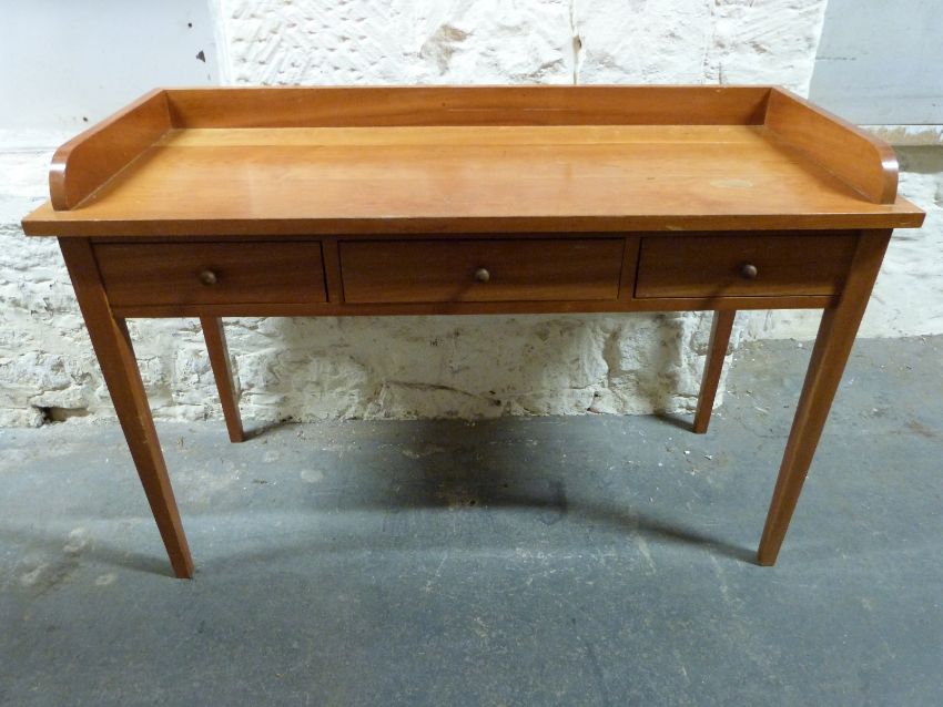 A galleried three drawer table raised on tapering legs, H80 x W120 x D48cm