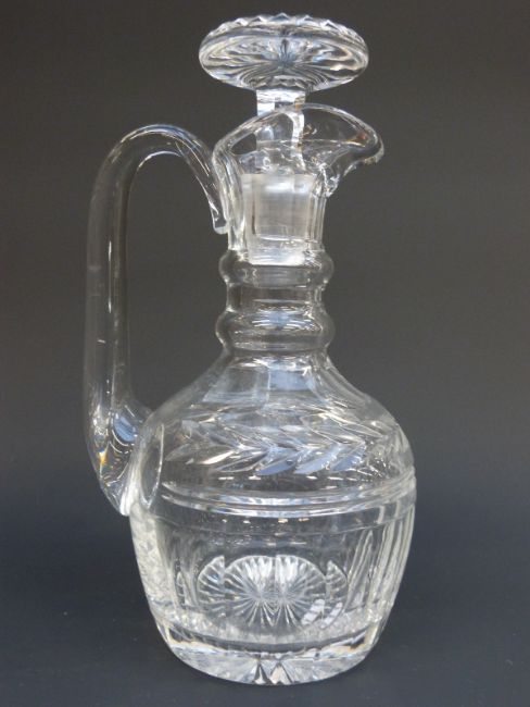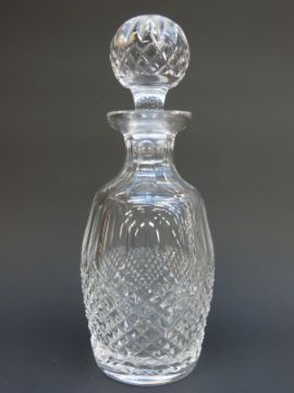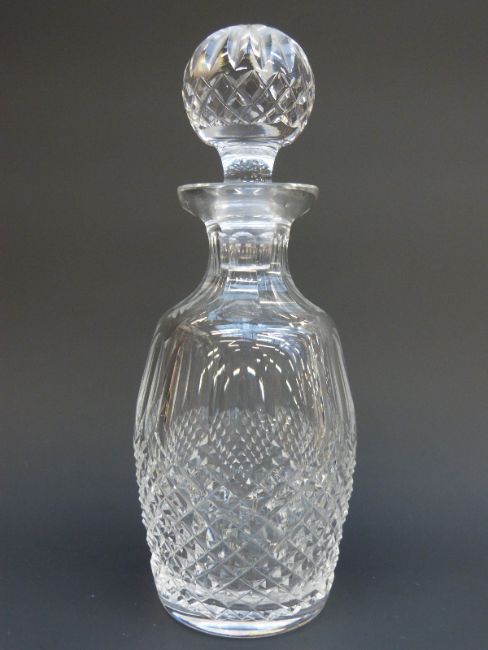 Three cut glass decanters comprising a Waterford Crystal Lismore pattern example, one Webb Corbett and one Stuart, largest 33cm tall.