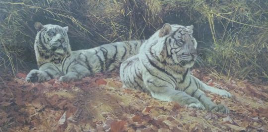 Anthony Gibbs 'White Tigers Ever Watchful', signed limited edition (713/1550) print, 44 x 81cm