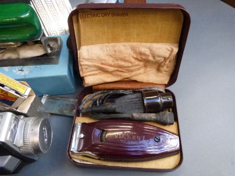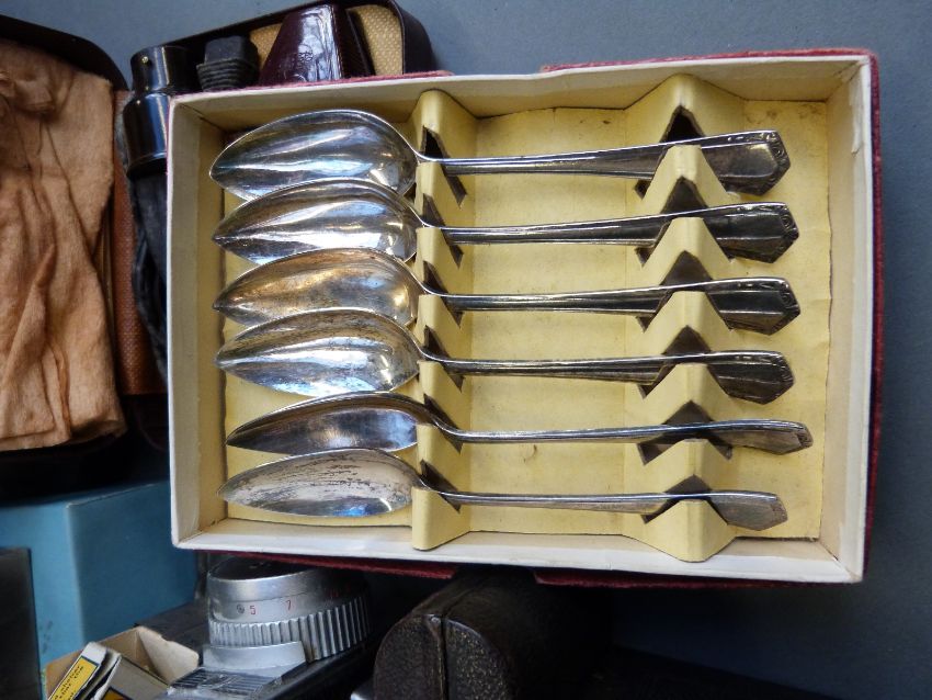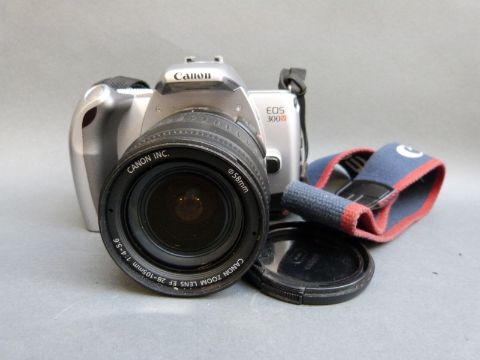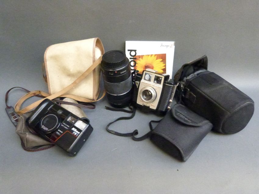 A quantity of collectable cameras to include Canon EOS 300v with 28-105mm lens and 75-300mm lenses, Epsilon folding camera, Elmop super 103, Butchers No6 watch pocket carbine, further collectables etc