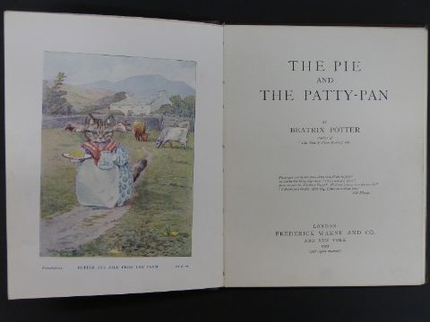 Beatrix Potter The Pie and the Patty-Pan, London Frederick Warne 1905 first edition, colour plates in original boards with titling decoration and circular colour onlay